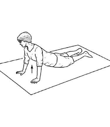 Try to release your back and hips while using your arms like in a traditional push-up to push yourself up. However, you should focus on keeping your hips low so that as you push up, extension occurs in your lower back (push your upper body as high as possible).