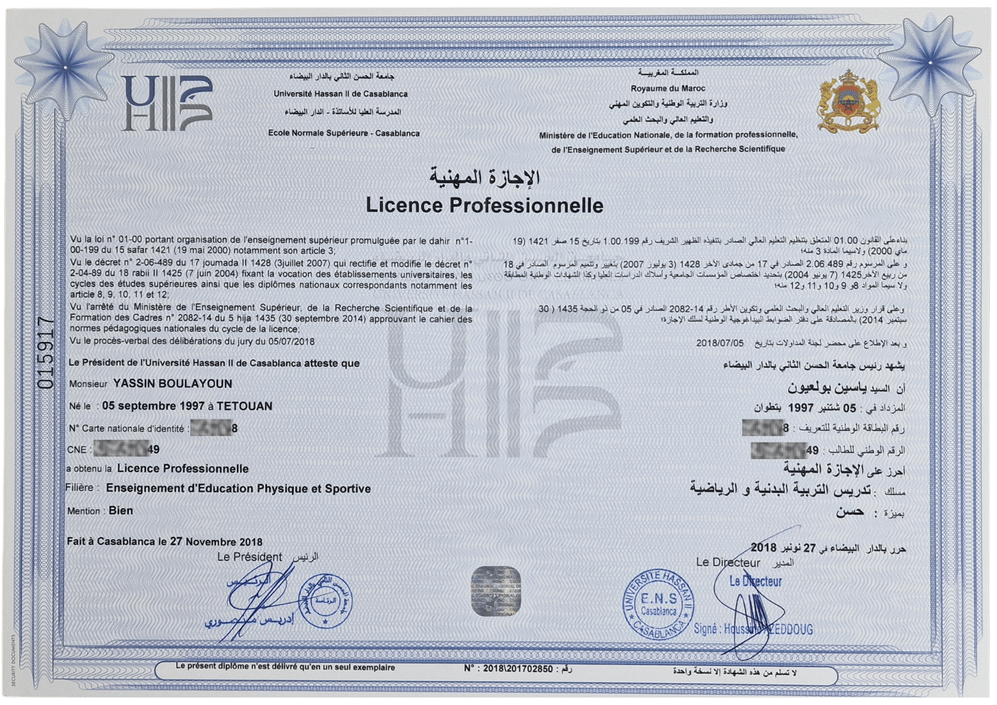 I completed my undergraduate studies in Physical Education and Sports Teaching at Hassan II University in Casablanca, Morocco. During my studies, I specialized in three main branches: tennis in racket sports, volleyball in team sports, and athletics in individual sports. I graduated with "honor" degree.