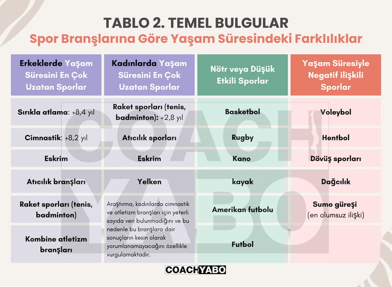 Araştırmanın en net sonucu şudur: Her spor dalı yaşam süresini aynı şekilde etkilemez.